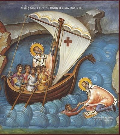 St. Nicholas of Myra in Lycea, the 4th century bishop of a minor Cappodocian town, is the only saint that the modern world still venerates, under the guise of “Santa Claus”, the secular patron saint of the “holiday season”, or as the French call it, “les fêtes de fin d’année”- “the end-of-the-year holidays”, when secular society celebrates the vestiges of Christmas, the feast of our Lord’s Incarnation. For Orthodox Christians Saint Nicholas is definitely part of the Christmas season. His feast day is a bright point during the Nativity fast, and at the Vigil Service, along with glorifying the Saint, we chant festal hymns that anticipate the Nativity. But he is a much-beloved personage in his own right, with two major feast days in his honor, and with his own day each week, Thursday, when the liturgical hymns of the Octoechos honor him along with the apostles.